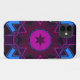 Este design de mandala funky apresenta roxo, rosa e azul no estilo de desenho animado. Visuais geométricos triplos para o hippie moderno ou amante de cores vibrantes!