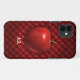 Ilustração de maçã suculenta sobre fundo de padrão vermelho com iniciais ou nome personalizáveis.