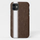 Capa Para iPhone 11 Caso do Faux Brown Leather & White Stripe iPhone 5