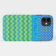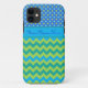 Um caso chic e personalizável de Case-Mate 'Mal Ali' para proteger seu iPhone 5/5 com um padrão de Bolinhas 'não combinável', agrupado com um padrão zigzag de Neon Green e Turquoise Chevrons em um fundo Emerald Green. Parte do intervalo 'Luas Azuis' de Posh & Painterly.