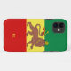 Uma caixa do CaseMate do iPhone 5 mal lá com um tema da reggae de Rasta que caracteriza a bandeira de Etiópia de 1897 bandas horizontais de inclusão do verde, do amarelo e do vermelho com um leão escuro de Judah no centro, vestindo uma coroa e guardarando uma cruz.