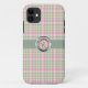 Maleta bonito iPhone 5 Case-Mate feita em um padrão de xadrez cor-de-rosa pastel, verde-menta e amarelo. Gráficos de uma banda verde, ao longo do meio, são decorados com um botão de tons cor-de-rosa e prateado, com um monograma verde de uma letra. Personalize a carta para você mesmo ou como uma ideia de presente de excelente. Na moda para proteger seu dispositivo eletrônico.