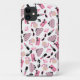 Um exemplo do iPhone 5 que caracteriza um design que consiste em óculos de sol retros cor-de-rosa e pretos do olho de gato, mudança cor-de-rosa franze com bolinhas cinzentas, embreagem cor-de-rosa franze com arco preto, batons cor-de-rosa, as pedras preciosas cor-de-rosa, e a garrafa do perfume com atomizador cor-de-rosa.