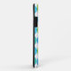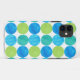 Um estojo de cor vibrante para proteger seu iPhone 5, com um padrão de abstrato 'Luas Azuis' em azul brilhante e verde neon em um fundo branco; de um design de colagem de papel pintado à mão por Judy Adamson.