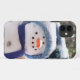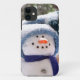 Este boneco de neve adorável que vestem um chapéu e um lenço azuis, com um sorriso de sequins pretos, e um nariz coberto de neve da cenoura, foram feitos em Atenas, piscina. Foto pelo desenhista.