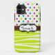 O design personalizado do caso do iPhone 5 do impressão do dois-tom teste padrão animal moderno por novo, por bonito e por selvagem tem umas bolinhas à moda e um fundo verde do teste padrão do impressão da zebra com área do cartaz para a personalização. Adicione seu próprio toque pessoal adicionando seu próprio texto. Novo, bonito e selvagem é seu ir-à fonte em linha para o design o mais na moda, o mais bonito, elegante, funky, legal e personalizado em bens de papel modernos, os cartões de visitas à moda, e os presentes exclusivos. Visite-nos em: www.zazzle.com/youngprettyandwild*