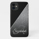 Capa Para iPhone 11 Chic Name Monograma Black Silver Glitter Ombre