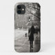 Este caso customizável do iPhone 5 caracteriza uma foto preto e branco de uma rua chuvosa no Greenwich Village situado na Nova Iorque. Uma mulher com um guarda-chuva anda abaixo de um passeio encharcado por a chuva sob árvores nesta cena bonita da cidade.