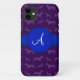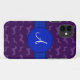 Capa Para iPhone 11 Círculo azul de dachshund roxo monograma