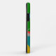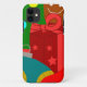 Esta capa de telefone tem uma design de Natal de uma colagem de uma árvore de Natal, um ornamento, uma estocagem, um presente, e um rapaz de pão de gengibre.