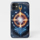 Um misterioso, intricadamente desenhado cobrir de livro de um grimério mágico pertencente a um bruxo de outro mundo, com uma aura brilhante e mesmerizante emanando do símbolo central, colocado sobre um fundo azul-escuro rico que evoca um senso de conhecimento antigo, místico, adornado com estranhos hieróglifos alienígenas em tinta prateada imersa, ao lado de símbolos criticos