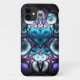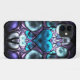Esta é uma imagem fractal de efeito de vidro manchado que parece brilhar com um coração azul no centro. Ao redor do coração azul há vidros como bolhas de azul claro, e púrpura.