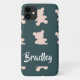 Capa Para iPhone 11 Custom name pink teddy bear silhouette