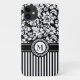 Damasco floral preto moderno e listras sobre fundo branco. Monograma opcional
