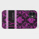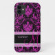 Damasco roxo e preto elegante com monograma. Capas de telefone personalizadas. Adicione seus próprios nome e monograma.