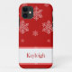 Whimsical e divertido Deixe-o nevar Caso-mate Mal Ali está o iPhone 5 Case em vermelho brilhante com uma cascata de flocos de neve desenhados manualmente. Esta capas de iphone divertida manterá seu telefone protegido com festas de férias ou de inverno. Fácil de personalizar, basta adicionar o texto personalizado de sua escolha.