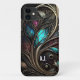 Ornamento decorativo em metal de flores e folhas, no estilo da ilustração sonhadora, bronze escuro e azure.