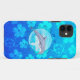 Golfinho pulando através de um símbolo solar Maori com um oceano azul e barco a vela atrás dele. As tartarugas de Honu Azuis e as flores de hibisco azuis têm um padrão de fundo.