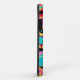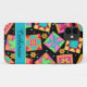 Um bar azul turquesa aqua fornece uma área para personalização com um nome ou outras palavras (e pode ser excluído se você quiser apenas o design). Esta capa de telefone celular apresenta um design de bloco de colcha baseado na arte original de Phyllis Dobbs. O design apresenta blocos de colchetes favoritos e blocos exclusivos criados em cores dinâmicas e vibrantes em um fundo preto. As cores são cor-de-rosa, laranja, turquesa, vermelha, amarela e verde. Totalmente personalizável. Este caso coordena-se com outros produtos desta loja para amantes de colcha para mostrar seu amor de colcha.