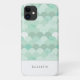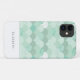 Padrão de círculo verde com círculos num padrão de onda geométrica sobreposto numa linha em vários tons de verde com textura de mármore e brilho. A sereia colorida é dimensionada em uma variedade de tons com uma faixa branca que pode ser personalizada com nome ou iniciais em fontes verdes escuras.