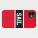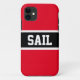Este design esportivo apresenta uma faixa central horizontal preta esboçada em listras brancas centradas entre as listras vermelhas brilhantes adjacentes. Texto atlético branco a dentro da faixa central, atualmente soletra "SAIL" e pode ser personalizado.