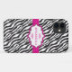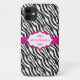 Esta capas de iphone é sobre ser uma menina feminina. A impressão zebra faz um fundo impressionante para um quadro de ornamentado em uma fita fuchsia bolinhas. Um nome ou outra mensagem é mostrado no quadro rodeado por ornamentos encaracolados. Disponível em cores alternativas com produtos correspondentes.