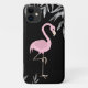 Flamingo Rosa Bonito na capas de iphone de fundo Tropical de Praia Negra Dramática. *