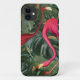 Dois flamingos cor-de-rosa no fundo das folhas de monstera
