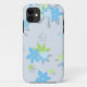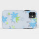 Um bonito design floral azul-branco com flores azuis com folhas verdes frescas em fundo de cinza mole.