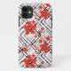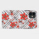 Capa Para iPhone 11 Flores vermelhas em fundo branco e preto.