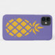 Essa capa de telefone simples e fofa vai completar seu telefone. Este design apresenta um abacaxi grande, frutado, laranja no centro do caso. Há um fundo amarelo claro atrás do abacaxi.