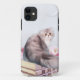 O gato persa do gatinho e macia rosa hued registra o caso do telemóvel dos amantes do gato ou de livro