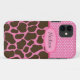 Maleta rosa personalizada e girafa castanha Iphone 5 com impressão animal com fita rosa.
