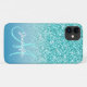 Capa Para iPhone 11 Girly Teal Faux Glitter Monograma Nome Personaliza