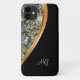 Meninas clássicas abençoando o gabinete do smartphone com iniciais de monograma que você pode personalizar online. Projetado com simulação de arte em fundo de joias impressa digitalmente para imitar a aparência de joias cintilantes com ouro e design preto, adiciona um toque moderno.