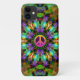 Capas de iphone 4 personalizados feitos com cores psíquicas brilhantes do arco-íris, padrões geométricos centrados com um símbolo de paz rosa e laranja | art por webgrrl.biz