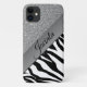 Capa Para iPhone 11 Impressão Glam Silver Glitter Zebra Personalizada