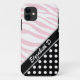 Capa Para iPhone 11 Impressão iPhone 5 de Zebra Rosa-Bolinhas Preta