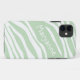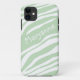 Caso iPhone 5 personalizado com um padrão verde e branco de faixas de zebra e personalizado com seu nome, na diagonal em branco, sobre uma das faixas verdes.