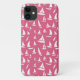 Capas de iphone rosa-branca impressa com um padrão de pequenos barcos à vela brancos. Ideal para marinheiros, iates, deques e amantes do oceano.