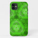 Um abstrato, design geométrico com espirais brilhantes de verde e branco dando a este iPhone 5 um visual quase científico e industrial.