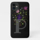 Design apresenta Monograma mais Flores num Design Floral. Inicial é a letra P. Capa de telefone preta.