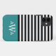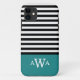 Tendência, chic, giro, padrão listrado preto e branco com borda de bloco verde verde azul escuro apresentando um modelo de monograma triplo para você personalizar facilmente com suas iniciais de nome primeiro, último e médio.