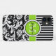 Verde limão moderno e moderno, preto e branco monogramado, com faixas pretas e brancas, com Case-Mate iPhone 11 Case.