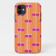 Esta capa de telefone tem um design moderno do século médio de linhas verticais laranja com retângulos cor-de-rosa acima repetidos sobre o design.