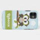 Um design bonito e à moda da coruja com um design da fita do ponto do contraste do verde limão. Uma coruja eyed larga adorável senta-se empoleirado em um ramo frondoso contra uma nuvem macia e um fundo listrado azul horizontal. © Chrissy H. Estúdio dos trabalhos de arte, LLC. Todos os direitos reservados.
