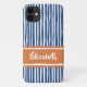 Atrai atenção com este design de listras verticais onduladas em laranja e azul. Personalize adicionando seu nome pessoal.