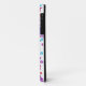 Um bonito, personalizável e floral Case-Mate 'Mal Ali' para proteger seu iPhone 4, com um padrão de flores brilhantes em púrpura, turquesa, rosa e laranja sobre fundo branco de uma colagem de papel pintado à mão por Judy Adamson. Você pode mudar facilmente a cor do plano de fundo usando o botão Editar.