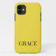 Brighten up your tech with this chic, personalized iPhone 11 case in a warm mustard yellow. This minimalist design features your custom name in a sophisticated, dark-toned serif font that perfectly complements the rich honey-colored background. Sleek, durable, and effortlessly stylish, this case is an ideal accessory for those who love bold, earthy tones. It makes a thoughtful custom gift for any occasion, from birthdays to graduation. Simply click "Personalize" to add your name or initials!