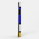 Dêem da classe e o estilo com o vosso casco decorado bonito de um motivo geométrico vivas às cores primárias azul, amarelo e vermelho sobre fundo branco com linhas pretas inspirado do famoso pintor holandês Piet Mondrian